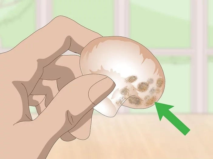 Hãy quan sát bề mặt nấm nếu bạn thấy có các mảng nhăn nheo, bị khô có nghĩa là nấm sắp hỏng, sẽ không thể ăn được nữa vì vậy tốt nhất khi nhìn thấy những cây nấm bị nhăn lại thì bạn hãy vứt chúng hoặc không nên chọn chúng cho món ăn của bạn.